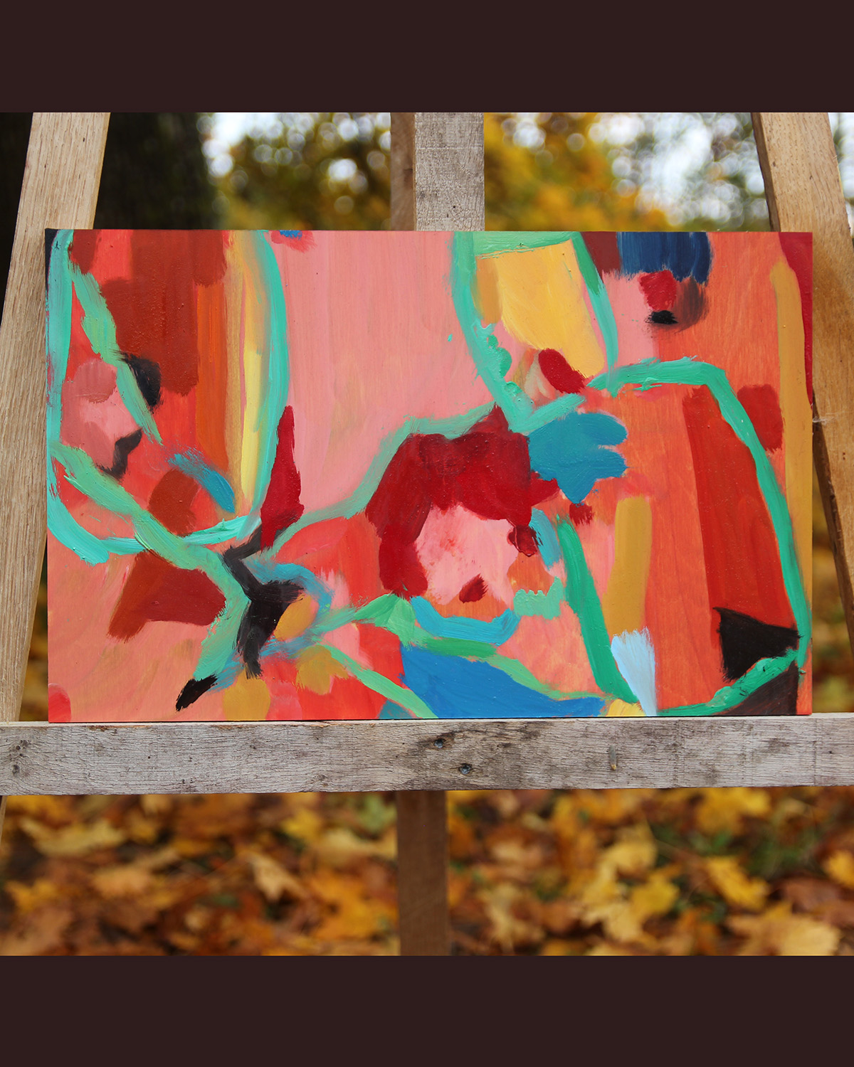 Oliemaleri på birkefinér, 46X30 cm, enkel træramme i eg, fri fragt