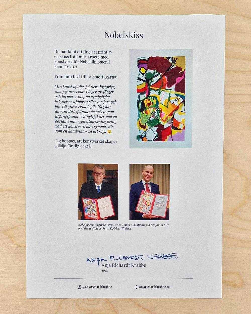 Fine art print av skiss från arbetet med konstverk till diplomen för nobelpristagarna i kemi 2021, Benjamin List och David Macmillan.
