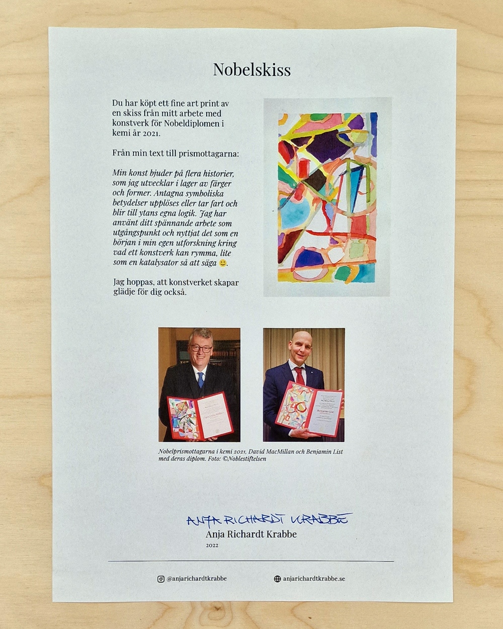Fine art print av skiss från arbetet med konstverk till diplomen för nobelpristagarna i kemi 2021, Benjamin List och David Macmillan.